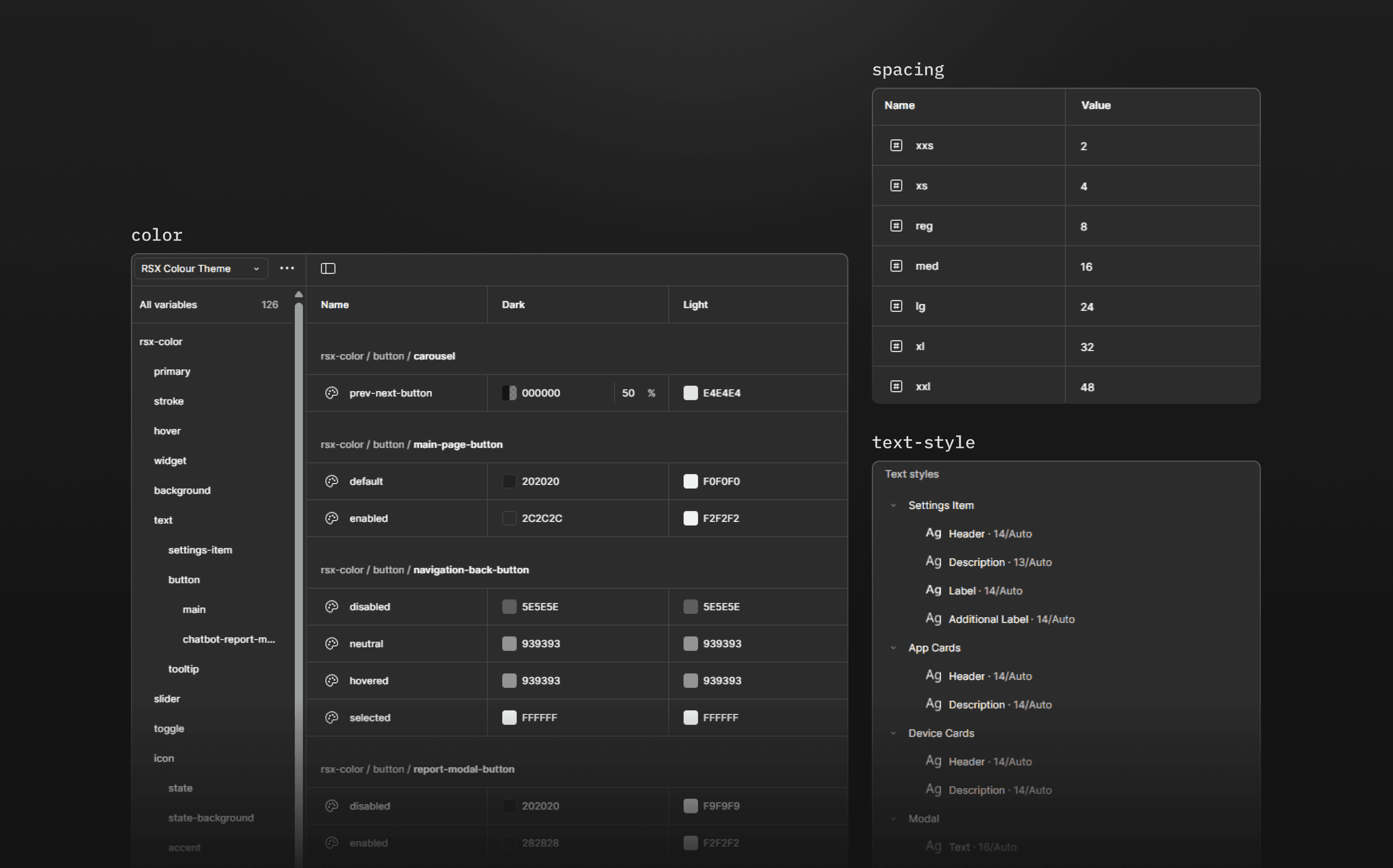 To bring consistency to layouts, I introduced numeric tokens for spacing and radius based on a structured 4-point scale. By defining a predictable set of spacing and radius tokens, layout decisions became clearer, adjustments were safer to make.