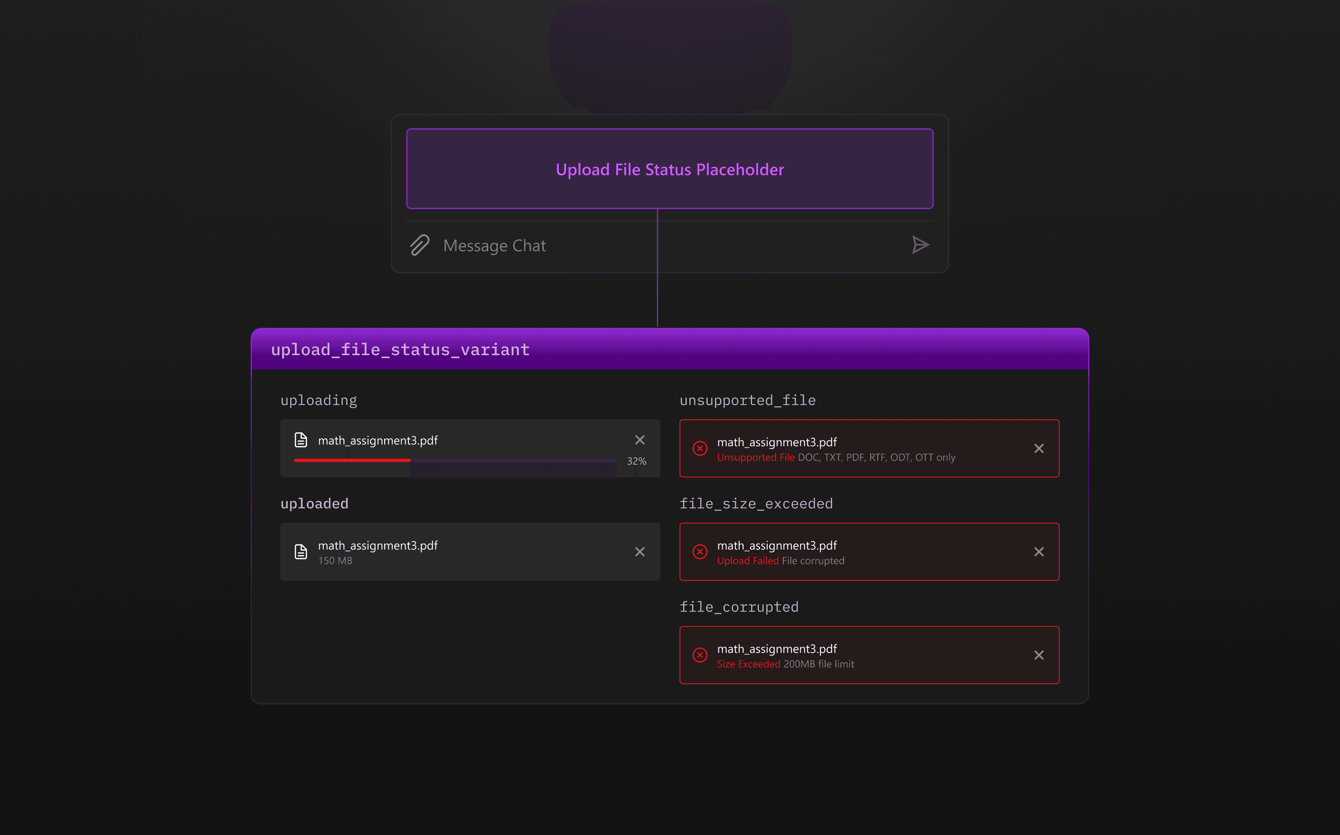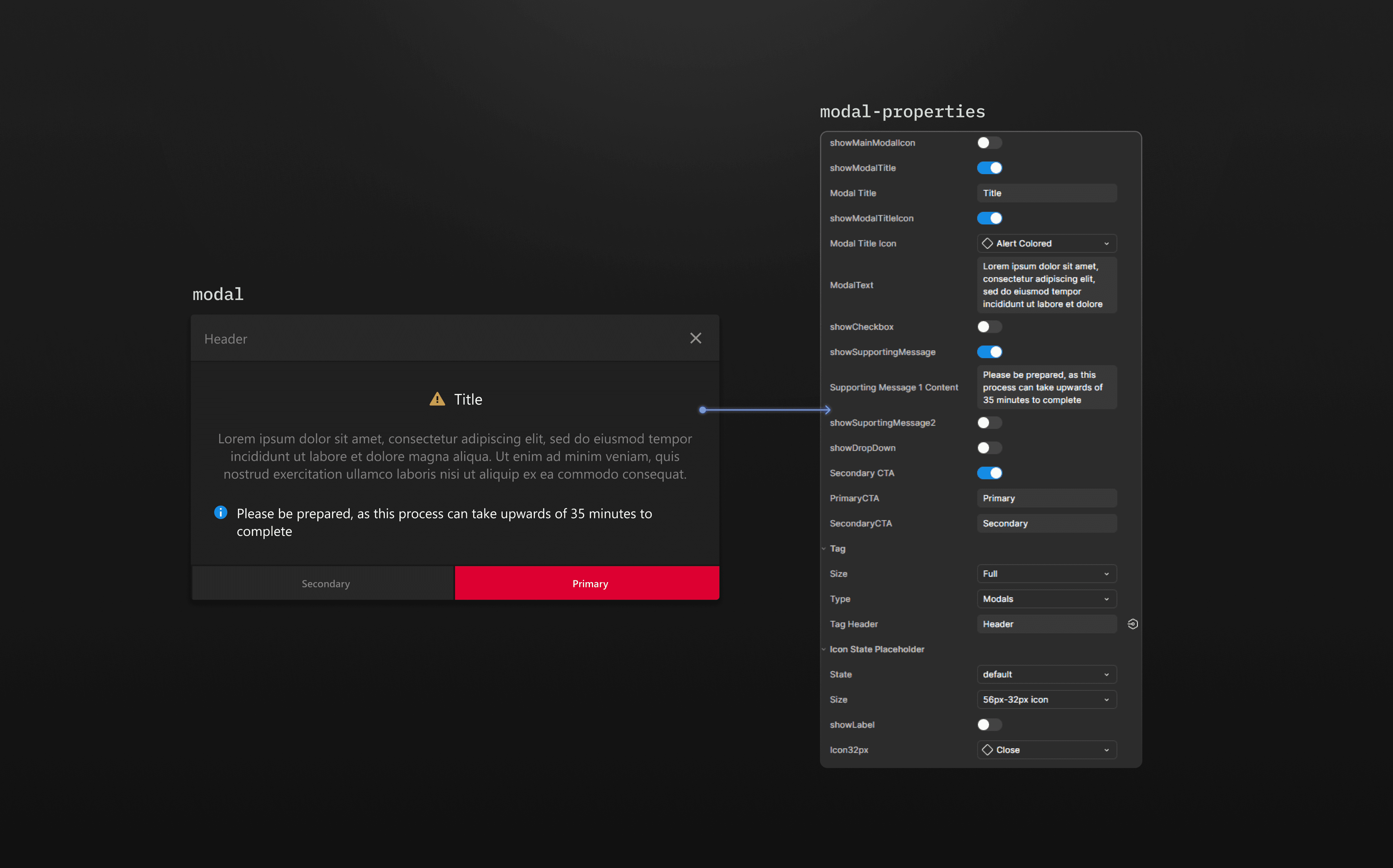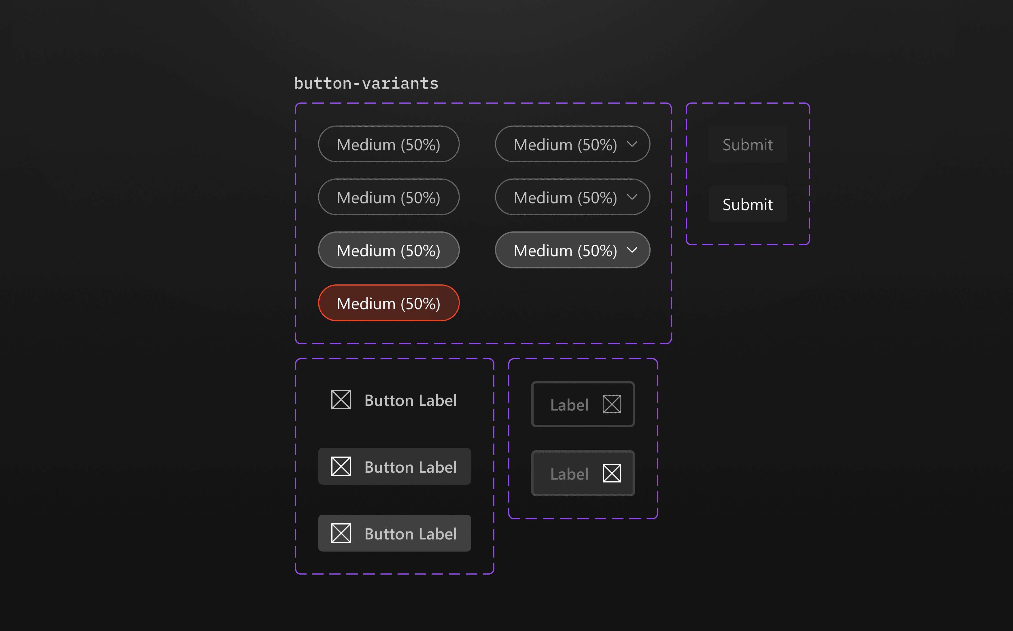To make components more consistent and easier to use, I defined clear properties for each one, such as size, state, type, and icon options.