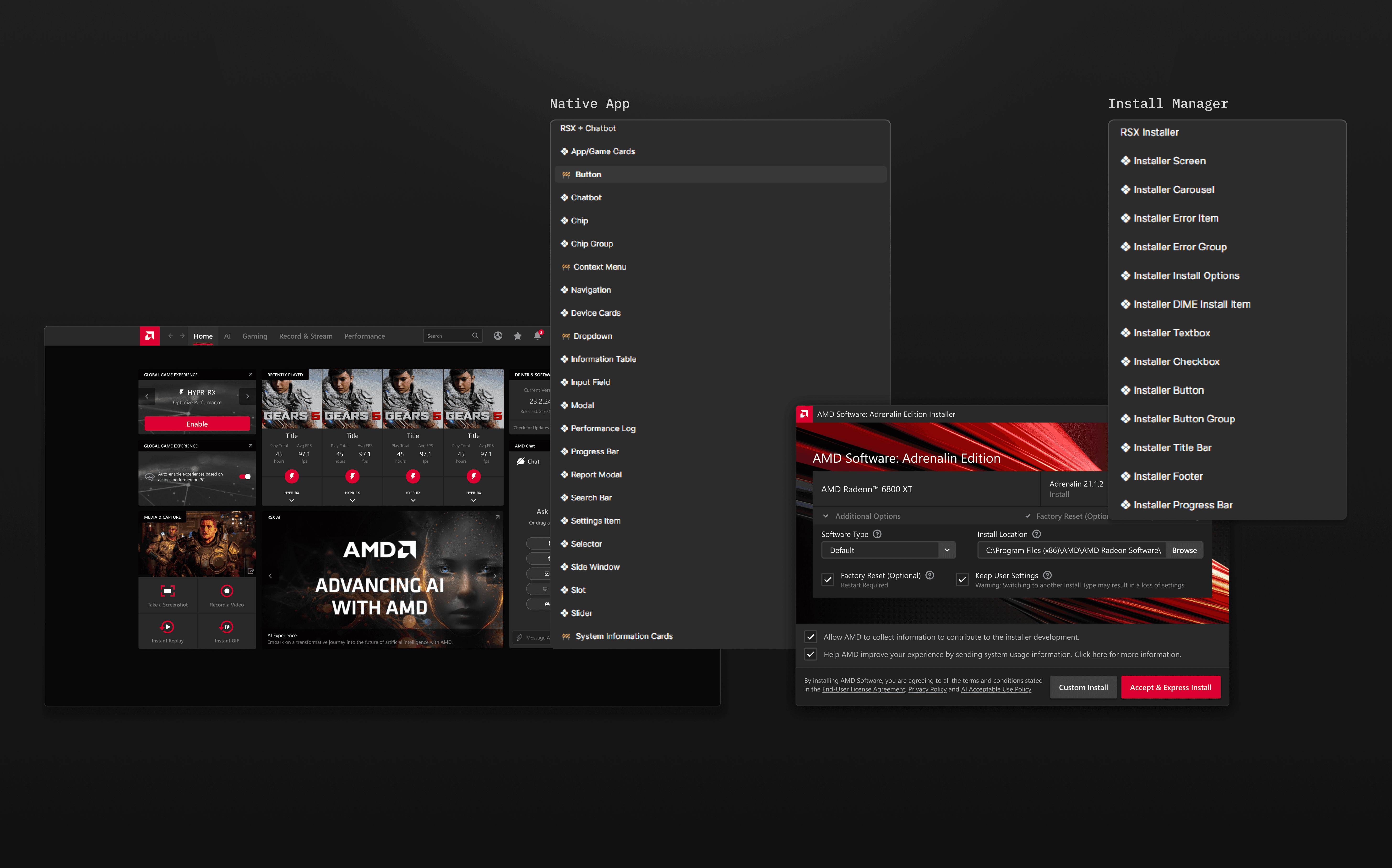 Create a unified design system that organizes assets, standardizes components, and brings consistency to the current AMD Software experience.