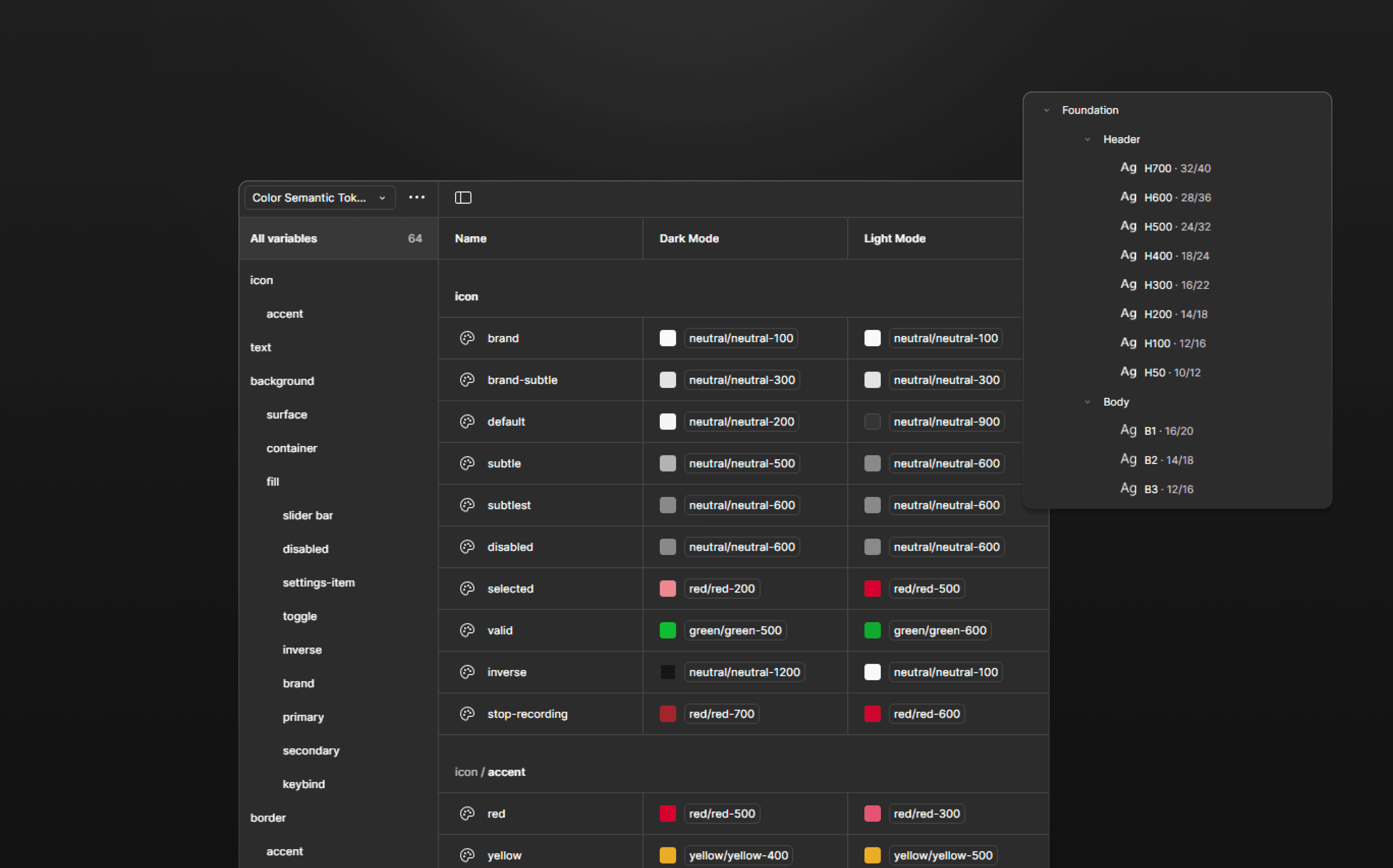 With predefined foundational tokens, all design assets can be categorized by token type, allowing designers to simply apply the appropriate tokens based on the asset type.