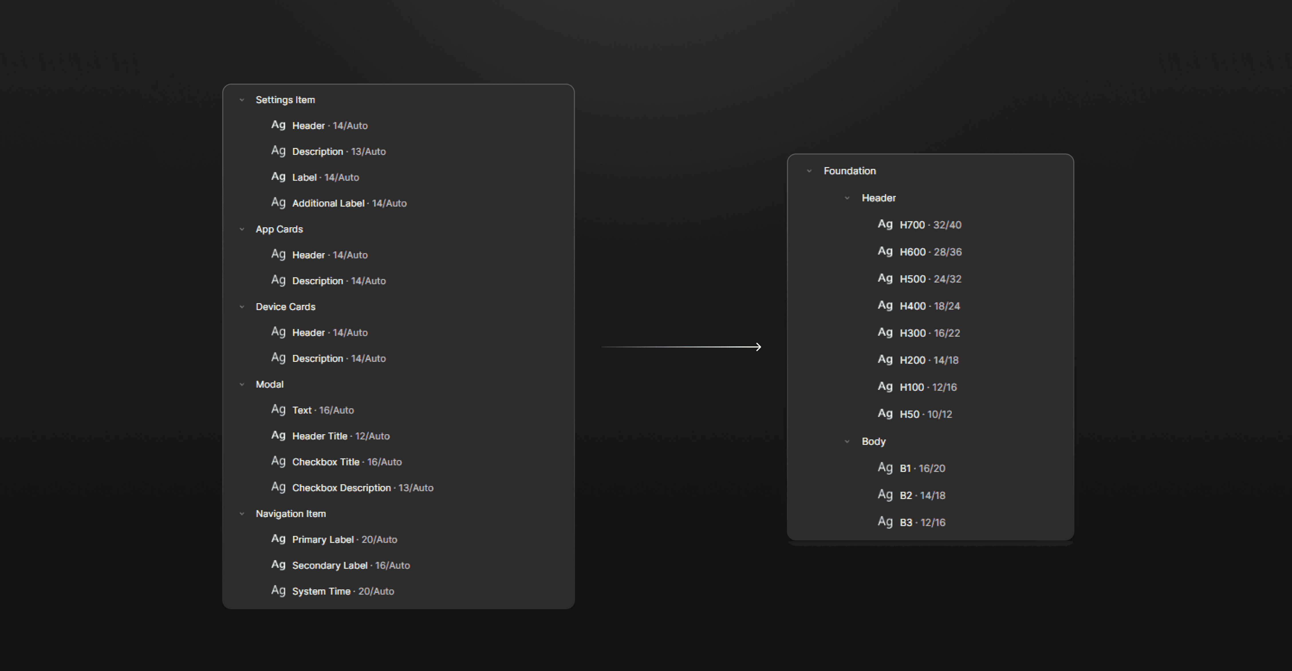 Text styles were inconsistent across different parts of the product, with each feature using its own font sizes and line heights. I simplified this by consolidating everything into a single, structured typography scale with clear header and body levels.